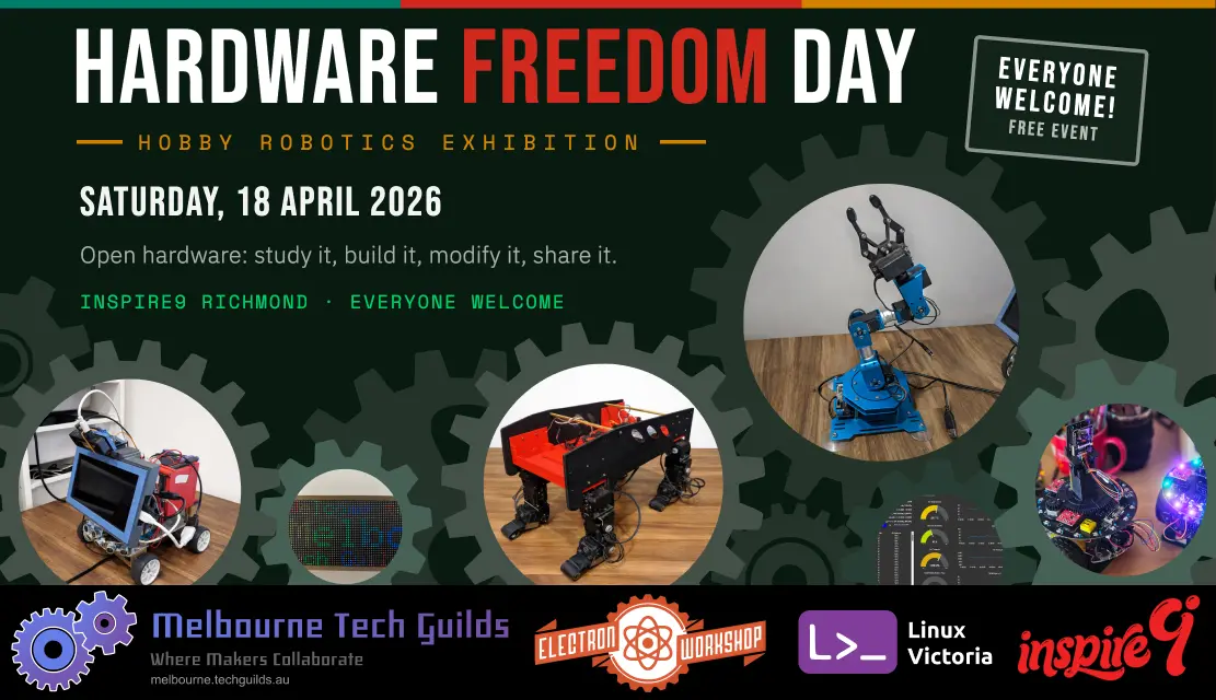 Join us for Hardware Freedom Day! Melbourne Tech Guilds and Linux Victoria celebrate open hardware and maker culture with live demos, lightning talks, and more.
